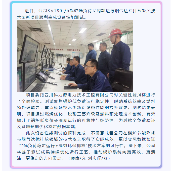 公司3×180t/h鍋爐低負荷長周期運行煙氣達標排放攻關技術創(chuàng)新項目順利完成性能測試
