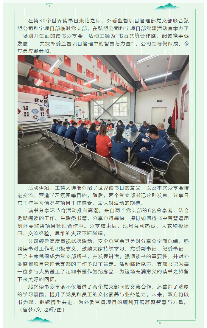 書香助力合作,閱讀共促發(fā)展  ——外委監(jiān)督項目管理部黨支部讀書分享會成功舉辦