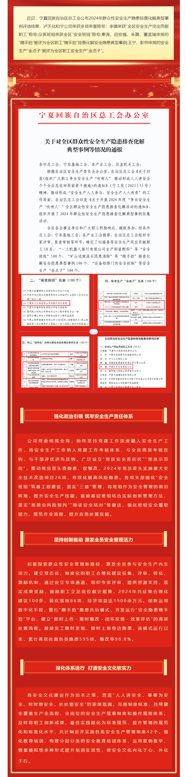 喜報(bào)!和寧公司在自治區(qū)2024年度群眾性安全生產(chǎn)隱患排查化解活動(dòng)中斬獲多項(xiàng)殊榮
