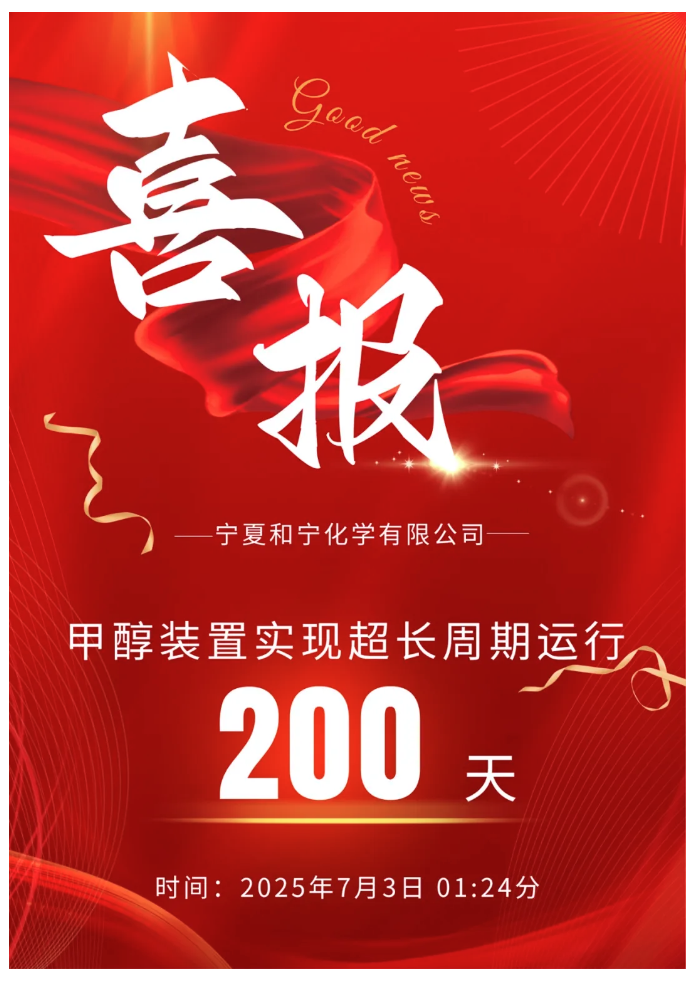 喜報(bào)!和寧公司甲醇裝置實(shí)現(xiàn)200天超長周期運(yùn)行