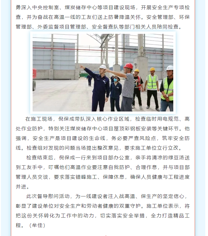 公司領(lǐng)導(dǎo)帶隊到項目現(xiàn)場開展安全督導(dǎo)及高溫慰問會