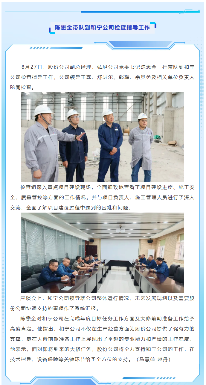 陳懋金帶隊(duì)到和寧公司檢查指導(dǎo)工作