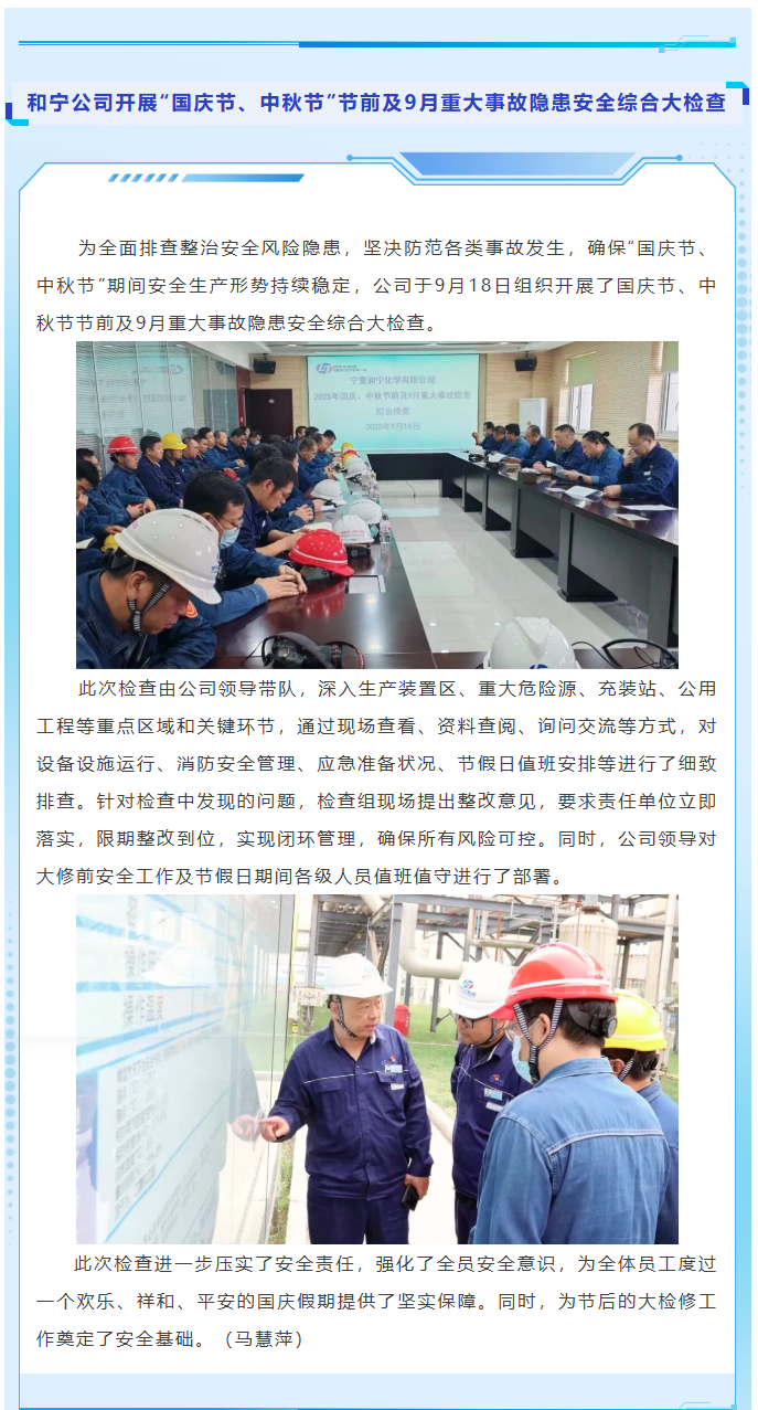 和寧公司開展“國慶節(jié)、中秋節(jié)”節(jié)前及9月重大事故隱患安全綜合大檢查
