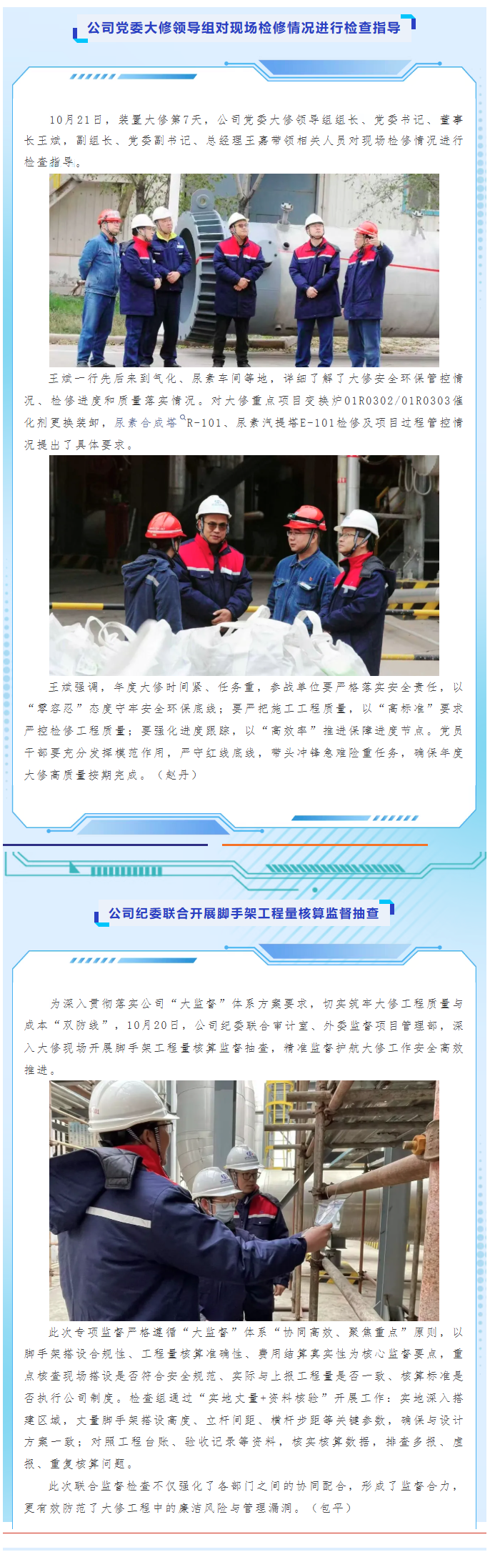 公司黨委大修領(lǐng)導(dǎo)組對(duì)現(xiàn)場(chǎng)檢修情況進(jìn)行檢查指導(dǎo)