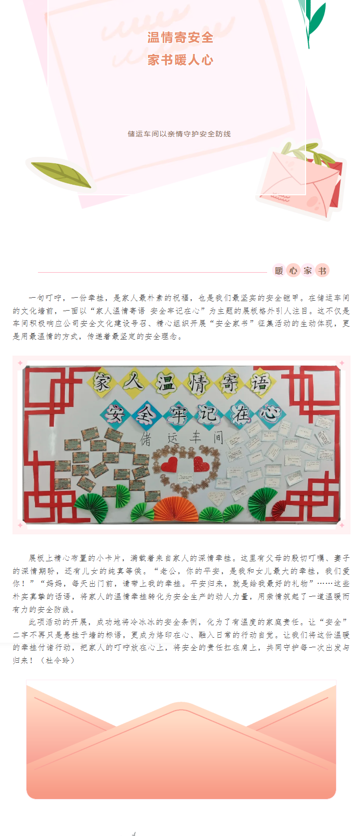 溫情寄安全 家書暖人心 丨儲運車間以親情守護安全防線