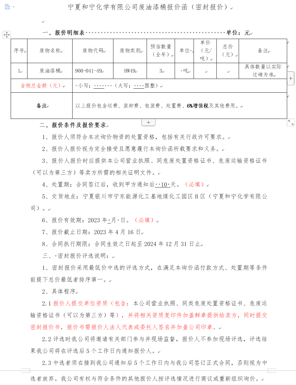 寧夏和寧化學有限公司廢油漆桶報價函(密封報價) (2)