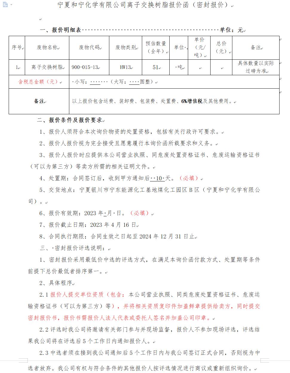 寧夏和寧化學(xué)有限公司離子交換樹脂