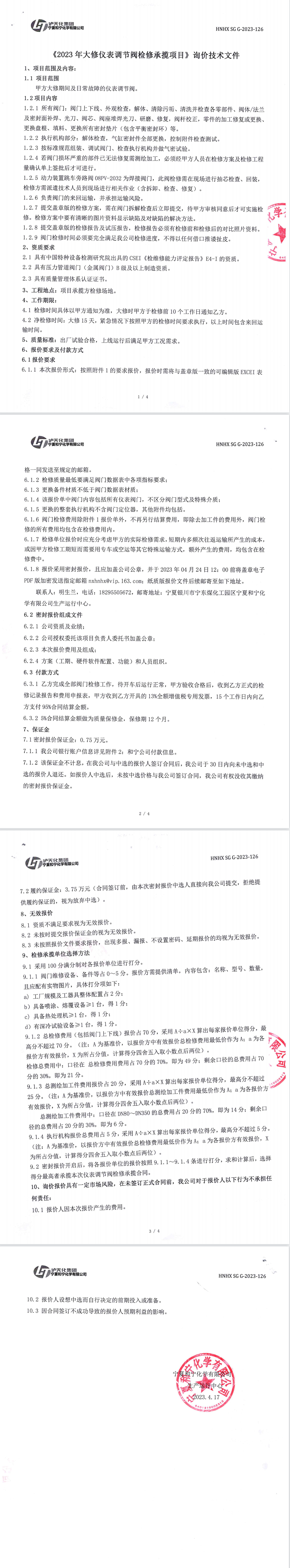 2023年大修儀表調(diào)節(jié)閥檢修承攬項目詢價文件