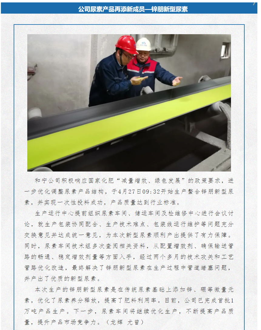 公司尿素產(chǎn)品再添新成員—鋅朋新型尿素