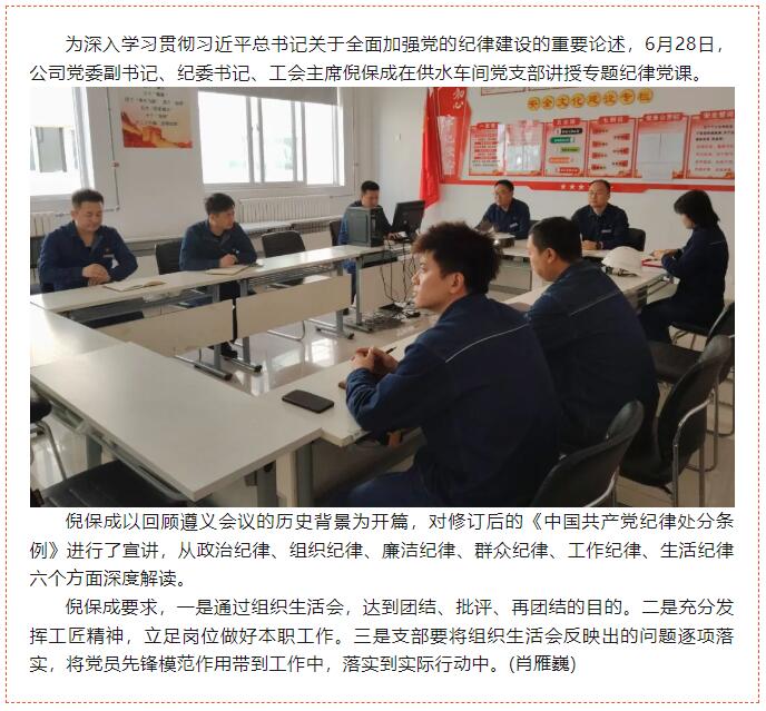 供水車間黨支部對口領(lǐng)導(dǎo)講紀(jì)律黨課