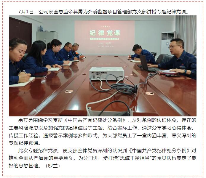 外委監(jiān)督項目管理部黨支部對口領(lǐng)導(dǎo)講紀(jì)律黨課