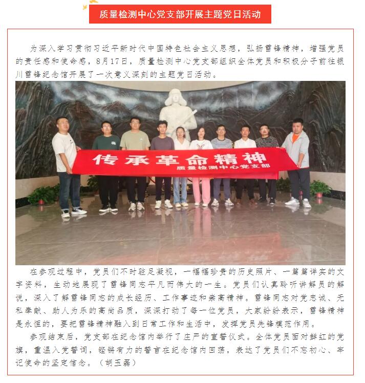 質(zhì)量檢測中心黨支部開展主題黨日活動