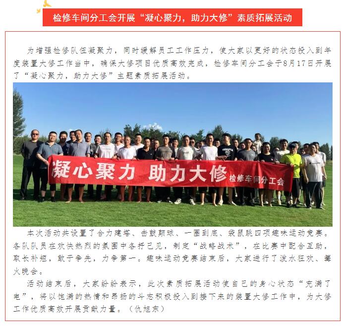 檢修車間分工會開展“凝心聚力,助力大修”素質(zhì)拓展活動