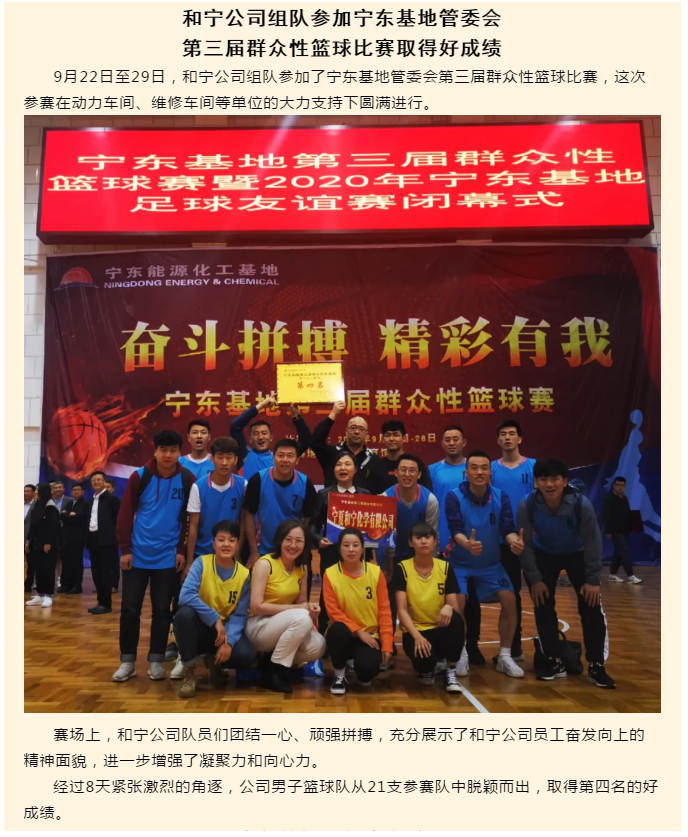 和寧公司組隊參加寧東基地管委會第三屆群眾性籃球比賽取得好成績