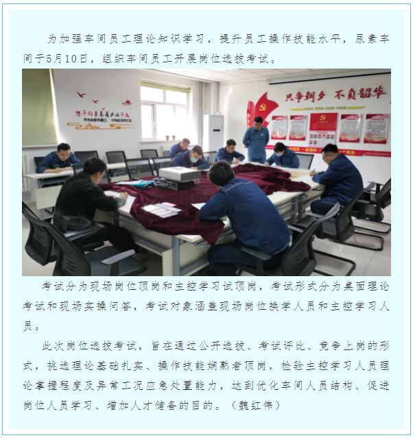 尿素車間開展員工崗位選拔考試