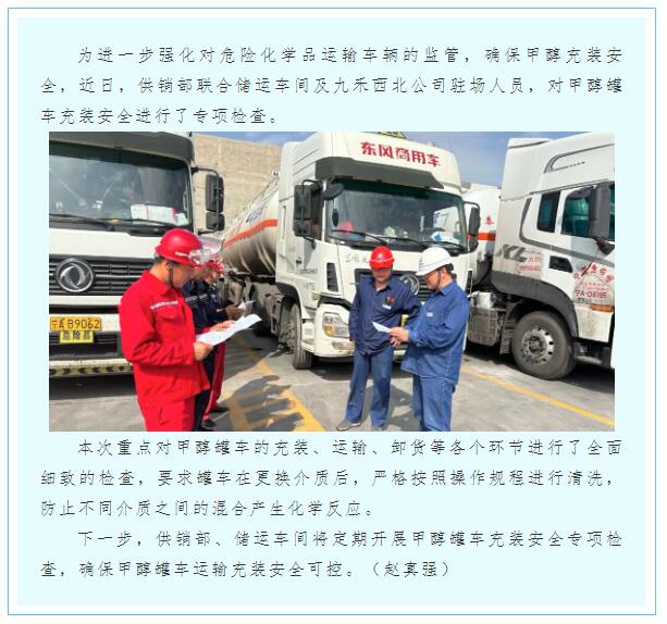 供銷部開展甲醇罐車充裝安全專項檢查