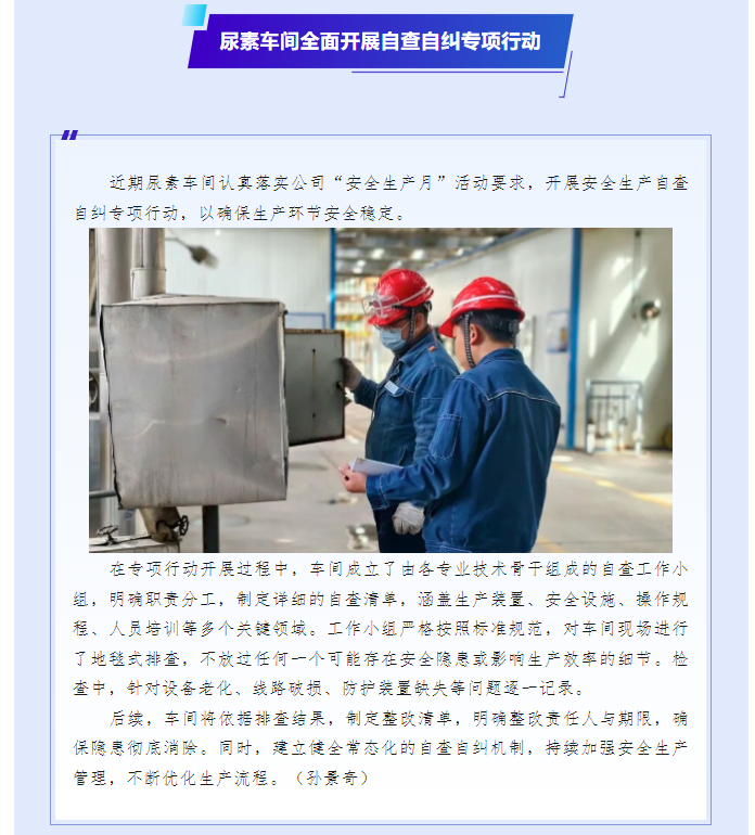 尿素車間全面開展自查自糾專項(xiàng)行動