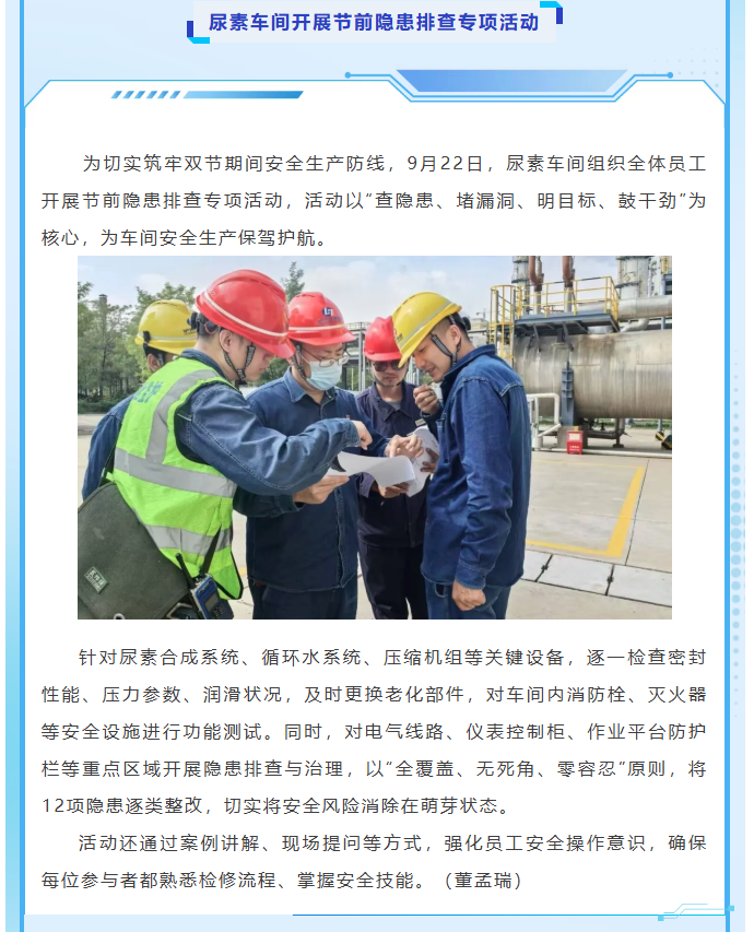 尿素車間開展節(jié)前隱患排查專項(xiàng)活動(dòng)
