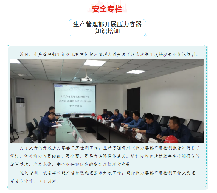 生產(chǎn)管理部開展壓力容器知識培訓(xùn)