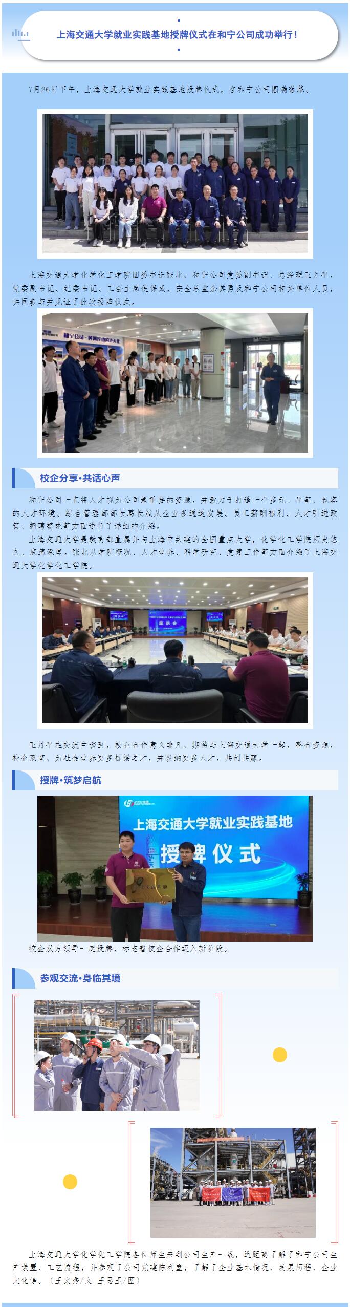校企雙育 合作共贏丨上海交通大學(xué)就業(yè)實(shí)踐基地授牌儀式在和寧公司成功舉行!