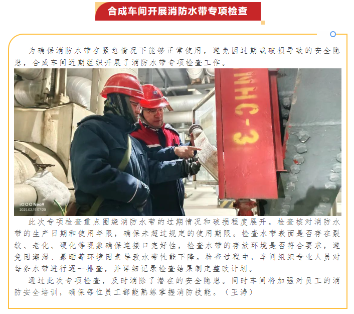 合成車間開展消防水帶專項(xiàng)檢查