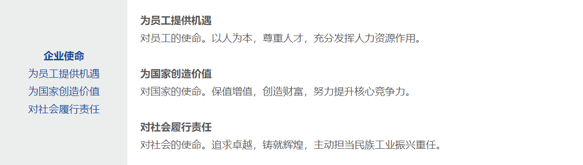 企業(yè)使命 為員工提供機遇 為國家創(chuàng)造價值 對社會履行責任